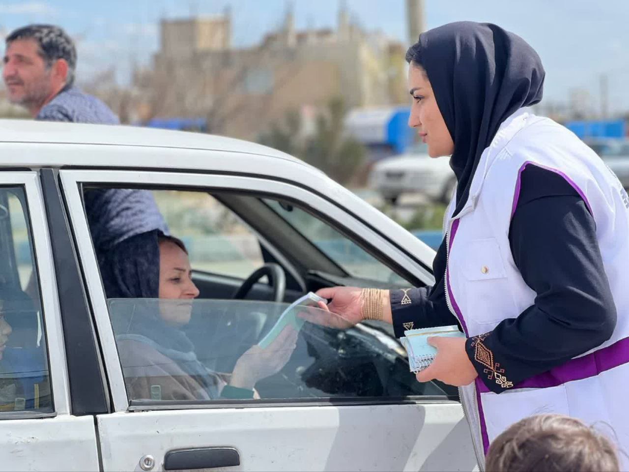 وزیع بروشور،تراکت و دفترچه یادداشت تبلیغاتی اورژانس اجتماعی پیرانشهر در بین مسافران نوروزی