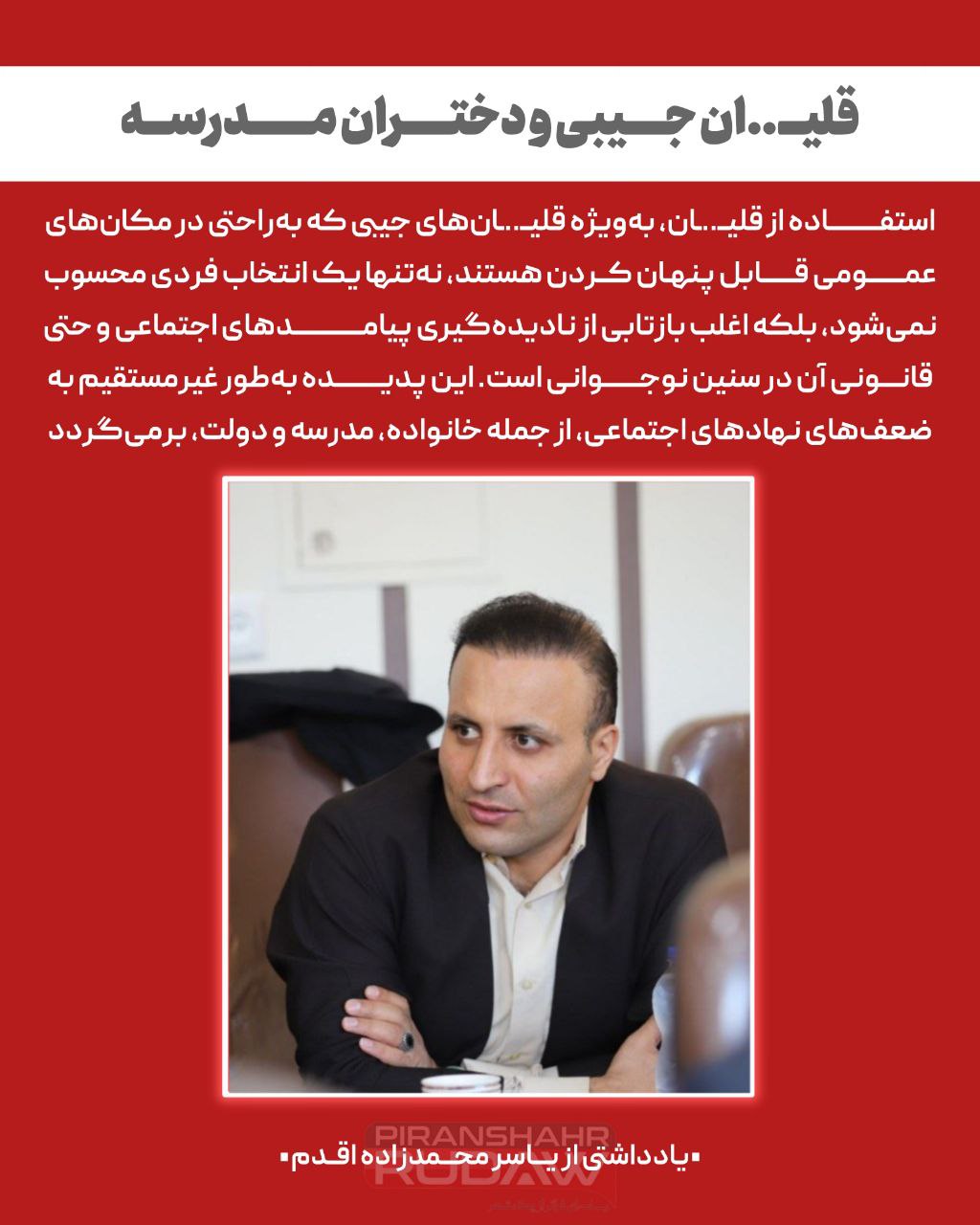 در عصر معاصر، که تحولهای اجتماعی و فرهنگی به سرعت در حال شکلگیری و دگرگونی است، گاهی برخی پدیدهها از درون جوامع به بیرون میزند و تهدیداتی جدی را متوجه ساختارهای تربیتی و فرهنگی نسلهای جوان میسازد. یکی از این پدیدهها، استفاده فزاینده از قلیانهای جیبی توسط نوجوانان، بهویژه دختران در محیطهای آموزشی است که بهطور فزایندهای نگرانکننده به نظر میرسد. این مسئله نه تنها بهعنوان یک رفتار ناهنجار، بلکه بهعنوان بازتابی از ضعفهای عمیقتر تربیتی، اجتماعی و حتی حقوقی در جامعه ما ظاهر میشود، که ضرورت دارد به آن توجهی ویژه و چندجانبه داشته باشیم.